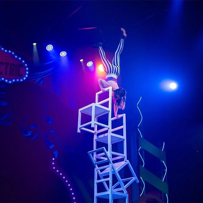 She has performed in stunt shows and worked as a multidisciplinary artist for nine years, now specializing in hand balancing and chair balancing
