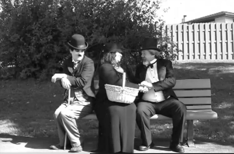 Our Charlie Chaplin tribute act performs a Charlie-roll-of-the-hat trick and other humorous Charlie Chaplin antics.
