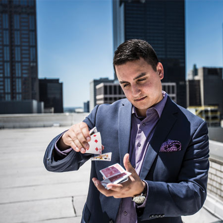 Specializing in shows that incorporate everyday objects, our talented magic artist makes the mundane amazing. Furnishing his astounding magic shows with a good dose of sarcastic wit, David is particularly popular as a corporate event and trade show magician because he can incorporate company branding whilst keeping audiences captivated from the word go. Able to create a personalised magic show to cater to your specific requirements, speak to our team at Scarlett Entertainment USA today for more information about booking Chicago Magician David for your next event.