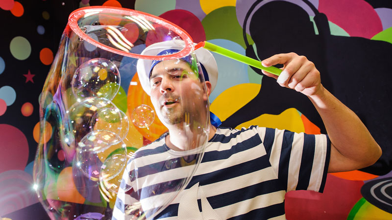 Well suited for a variety of celebrations, this children’s bubble entertainer is a popular children’s entertainment option for shopping malls, kid’s parties, birthdays, festivals, etc. Whatever the occasion, our performer is sure to leave lasting memories!