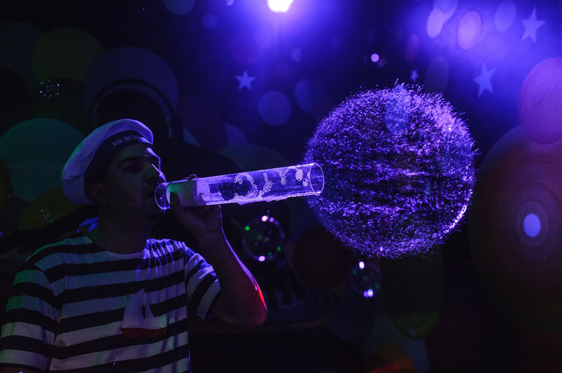 A specialist in bubbles, our children’s bubble entertainer can create bubbles of all sorts: giant bubbles, smoke bubbles, fire bubbles, bubbles inside bubbles, etc. There’s no limit to his creativity and his incredible skills!