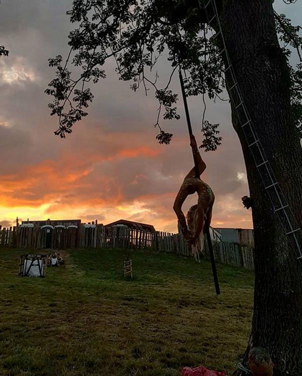 In addition to the Chinese flying pole, our aerialist can also be booked as a pole performer and hoop aerialist, providing the perfect atmospheric entertainment at every occasion. Not only that but our diverse performer is also available as a duo act, performing captivating routines that show our aerialists moving as one, catching one another and gliding into each move with the upmost elegance and grace.