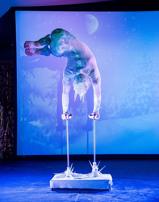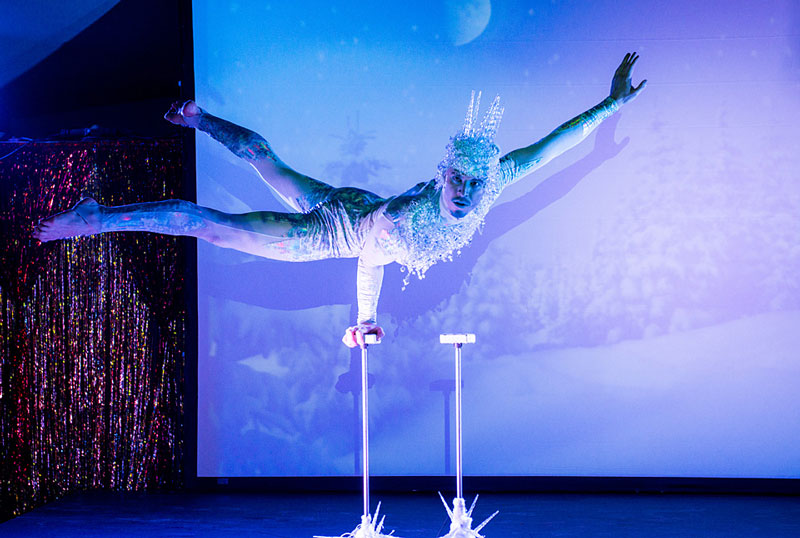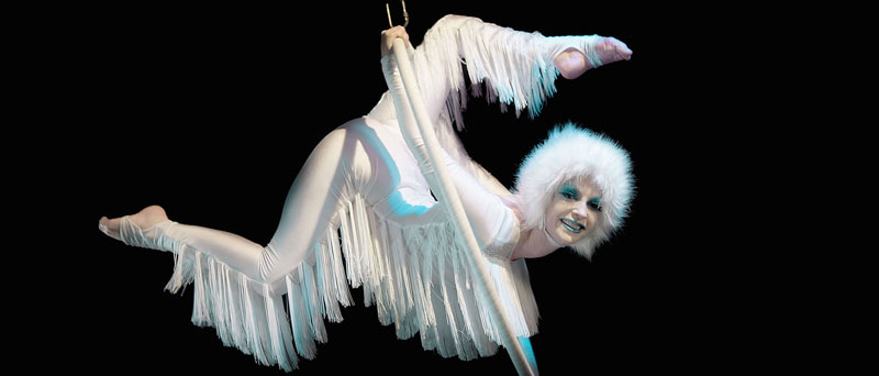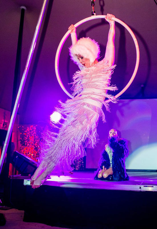 Each dressed in stunning couture costumes, our head-turning acrobats are sure to create an enchanting spectacle. Adorned in glitter, gems, faux fur stoles, rich velvets and sparkling fringing, our opulent circus is the perfect troupe to perform your festive show.