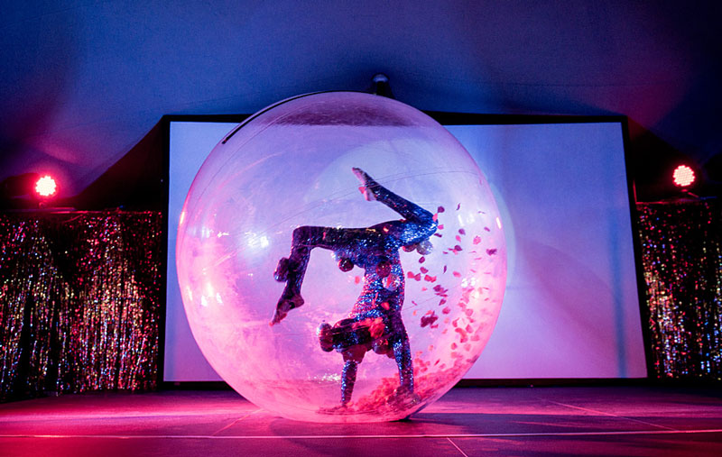 - A contortionist Christmas bauble inside a giant transparent bauble