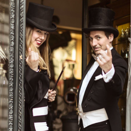 Book our hilarious Cinema Magic Comedy Show for a madcap magical experience like no other. This Original Show is an all encompassing magical extravaganza that combines stunning magic and illusions with cult movies world to create a unique and hugely entertaining show, a Cine Magic Show. Guests will be spellbound by our musical show and the crazy antics of our two artists as they perform their absurd and dazzling magic tricks with wit and style.