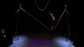 In performance, she gracefully explores the possibilities of the rope, controlling it with elegance and skill. She displays a highly entertaining act, using both balance and dance on the swinging rope.