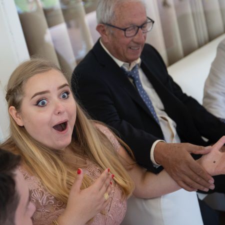 A talented magician who will amaze guests with sleight of hand and clever trickery