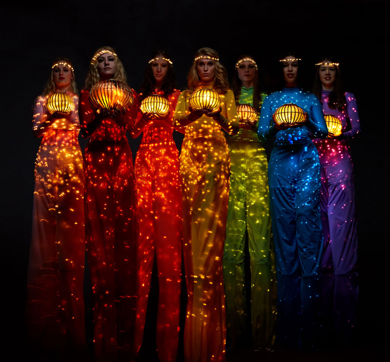 Our colourful and LED entertainment can be performed on foot or on stilts for larger than life performances. Striding high above the heads of your guests, this corporate entertainment can be used to deliver an enchanting and jaw-dropping spectacle in a range of settings.