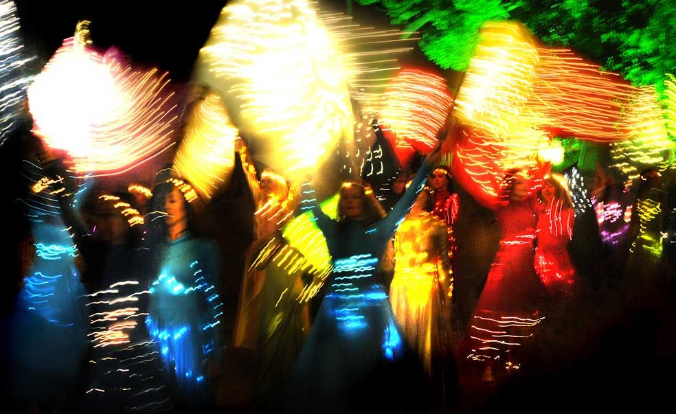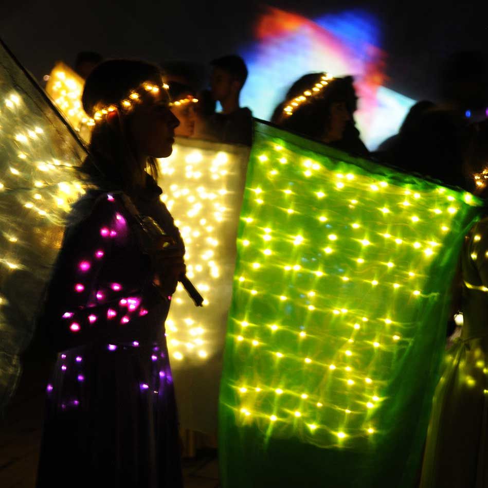 Create a beautiful and moody atmosphere by transforming our costumes into LED entertainment with stunning illuminated props and lights. LED flags create a mesmerising effect as they’re manipulated in unison, or go for a soft and romantic vibe with glowing LED lanterns.