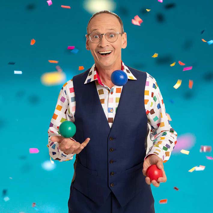 His high-energy performances will leave guests, young and old, belly-laughing at his comedy juggling antics and laugh-out-loud quips
