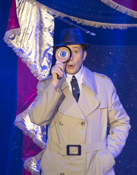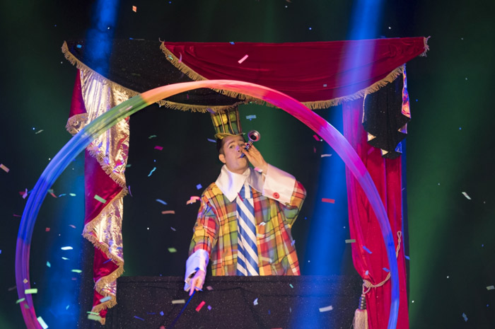 The show sees him transition into a variety of different characters and performs short theatrical acts