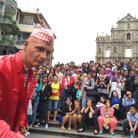 A popular entertainment option for festivals, children’s events, corporate functions, shop launches and more, he was even hired as an international jury at the World Statues Festival 2010. Able to provide full 20 minute shows, ambient entertainment or walkabout entertainment, you might even be able to get this human-like sweet salesman to strut his stuff on your dance floor. Entertaining audiences by handing out sweets and surprising everyone with unexpected tricks and gags, this guy might appear plastic but he has a heart of honey.