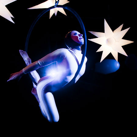 Treat your audience to a little stargazing with our stunning Constellation Hoop Act. Combining giant luminous stars that form an aerial mobile, our talented artist performs aerial acrobatics that is guaranteed to leave guests spellbound.