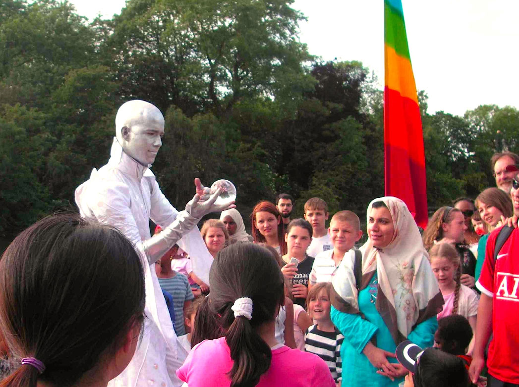 Contact Juggler Calvos is one of the UK’s top performers of ‘contact juggling’ - the manipulation of crystal balls that glide, float, dance and levitate surreally around the artists’ hands, arms and bodies. He has performed for over 10 years at a diverse range of events throughout the UK, Europe, Middle East, Asia and North America.