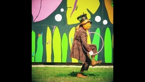 In addition to contact juggling our performer is a skilled flow artist using isolation techniques to manipulate buugeng, hoops and eight rings to create hypnotizing optical illusions.