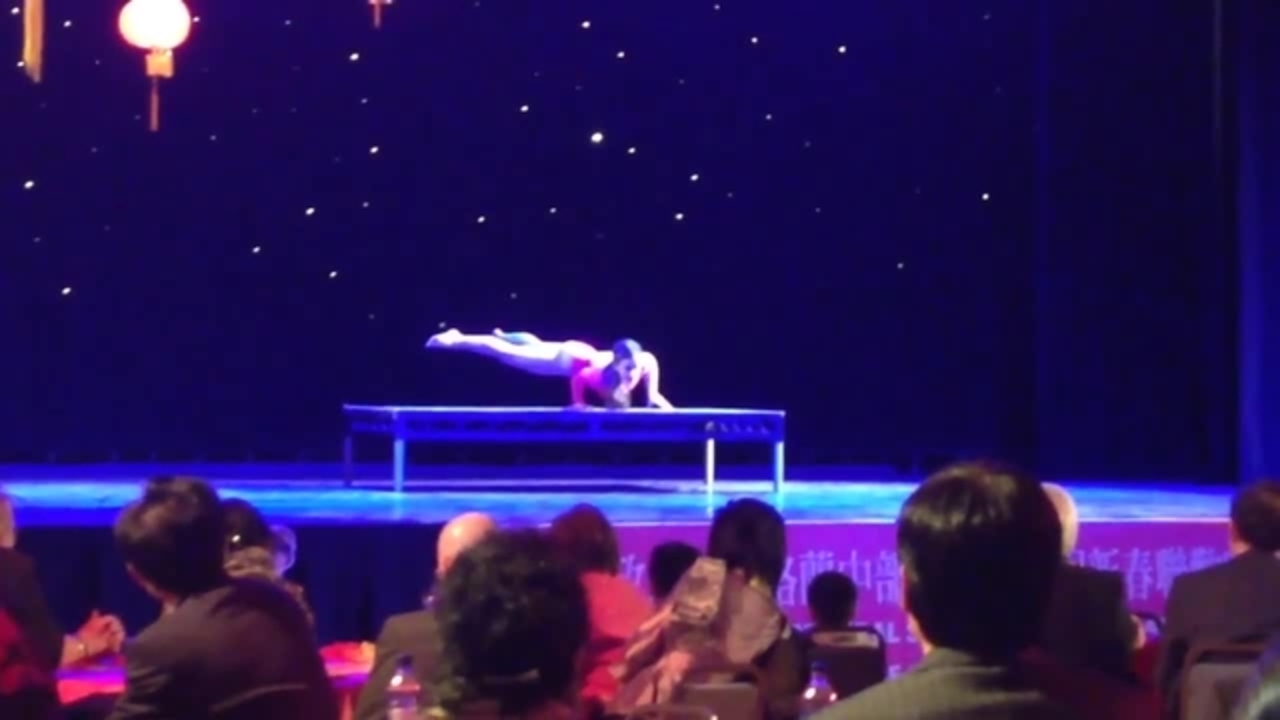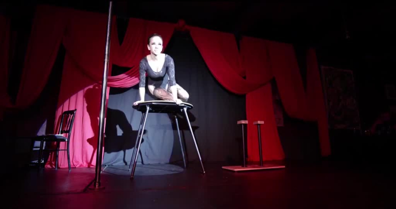 Pixie performs a double contortion act