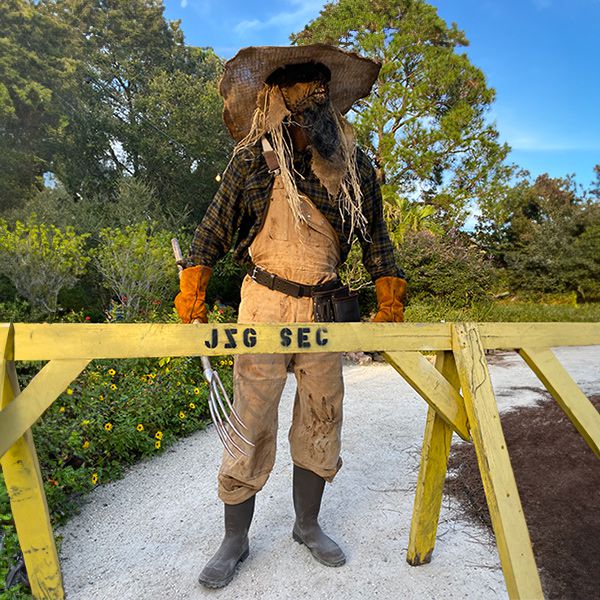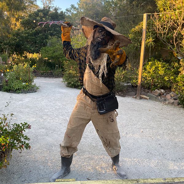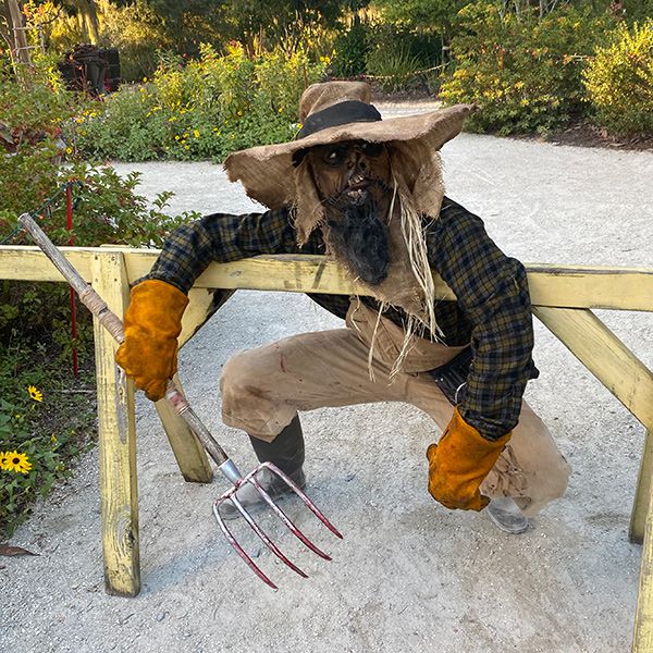 Our creepy Crop Keeper is available for roaming in character. With tattered overalls and a menacing mask, your guest's spines will tingle