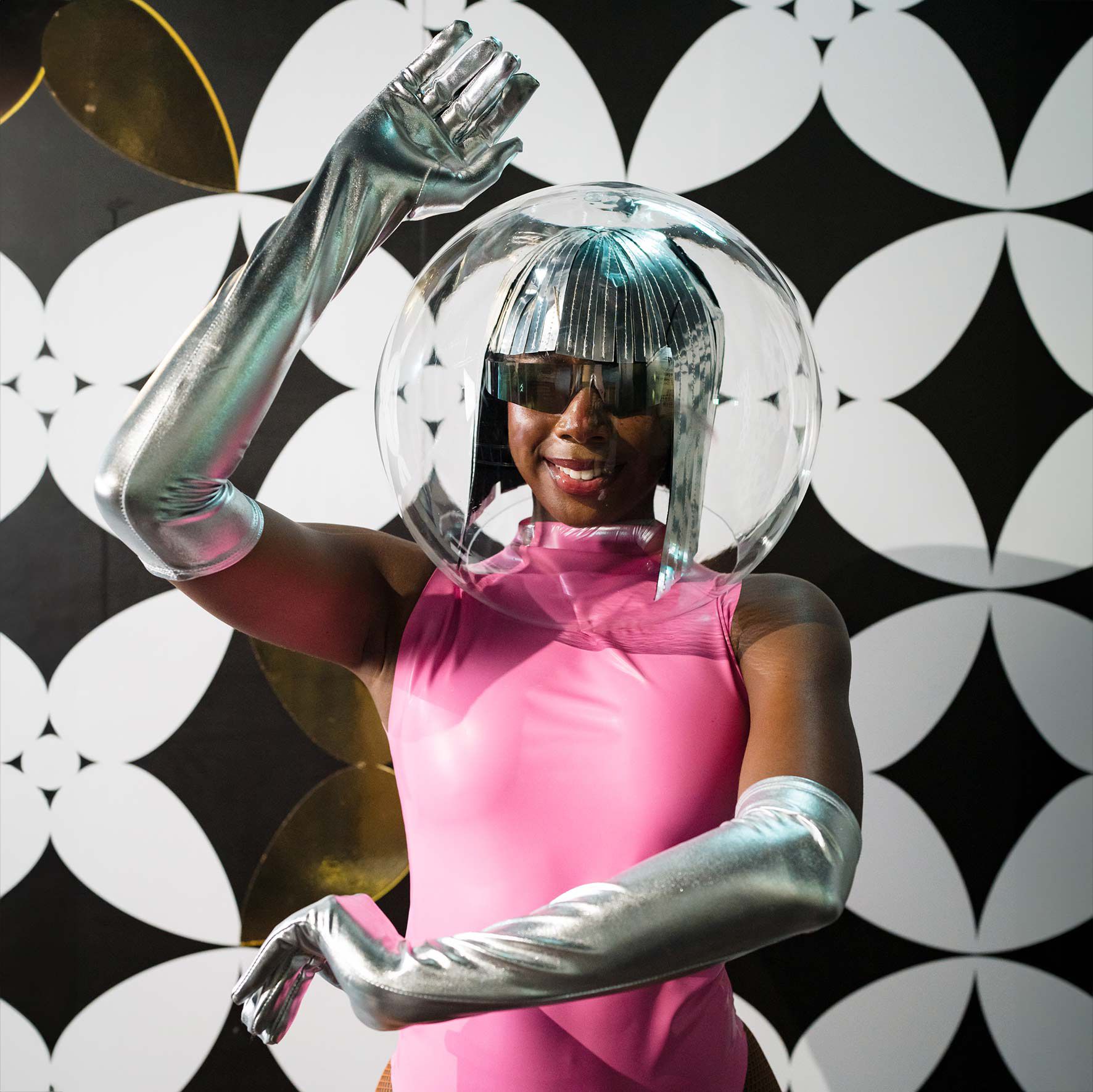 Dressed in unique, cyber-inspired costumes that include fish bowl helmets that create a fun visual as our hostesses interact with guests