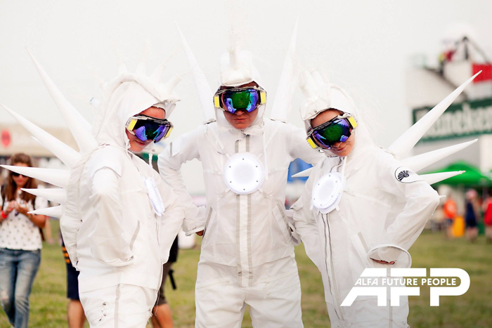 Our stunning cyber snowmen are mesmerising futuristic characters with totally unique costumes. Their white themed outfits give them their unusual snowman characteristics. With pointy spikes, frilly bits, face paints and sci-fi goggles, the cyber snowmen are unlike anything you’ve seen before. In addition to their visually exciting costumes, the trio have inbuilt lighting that makes them superb walkabout entertainment for night time events.