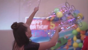 Ranges from appearing flowers to ultraviolet bubbles to smoke-filled bubbles to enormous bubbles that will cover a whole person