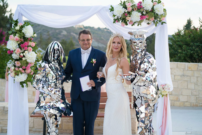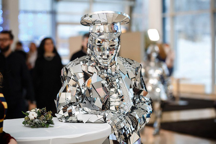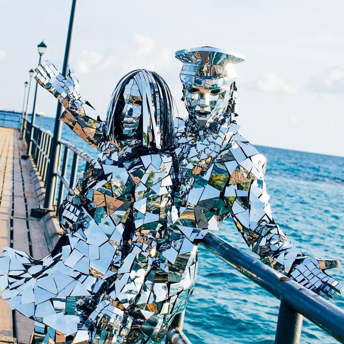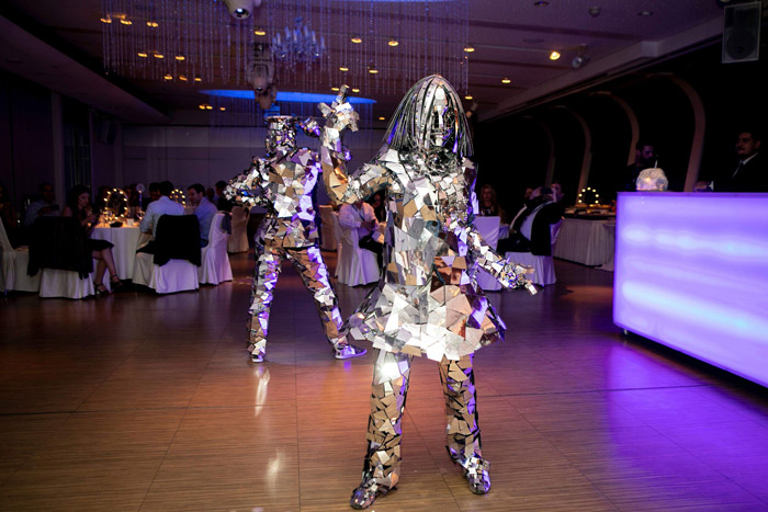 This male and female mirror couple is bound to amaze your guests as they roam around in their suitable stylish mirrored outfits