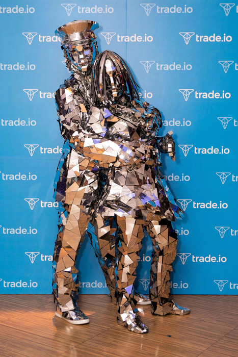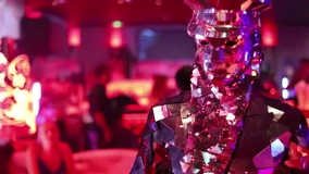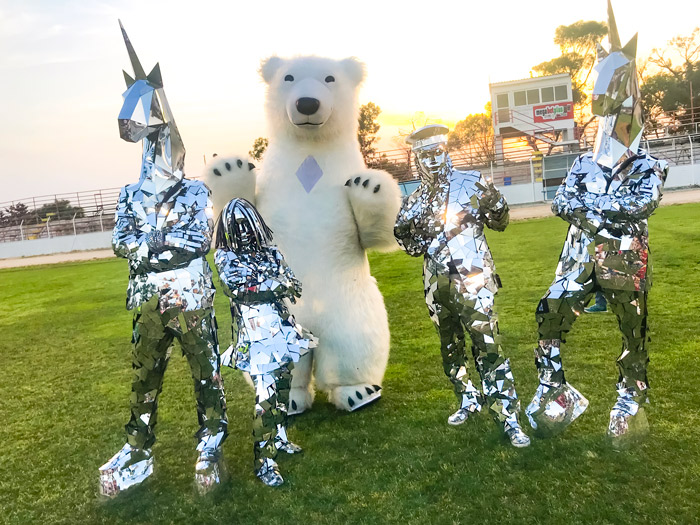 Made of thousands of tiny reflective pieces, their sparkly costumes will bounce off dancefloor lights or make them reflect their surroundings