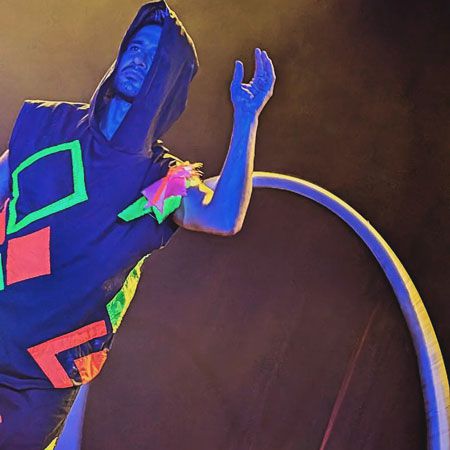 With experience in circus productions, he can perform solo or as part of a larger performance and is happy to adapt costuming to match your theme