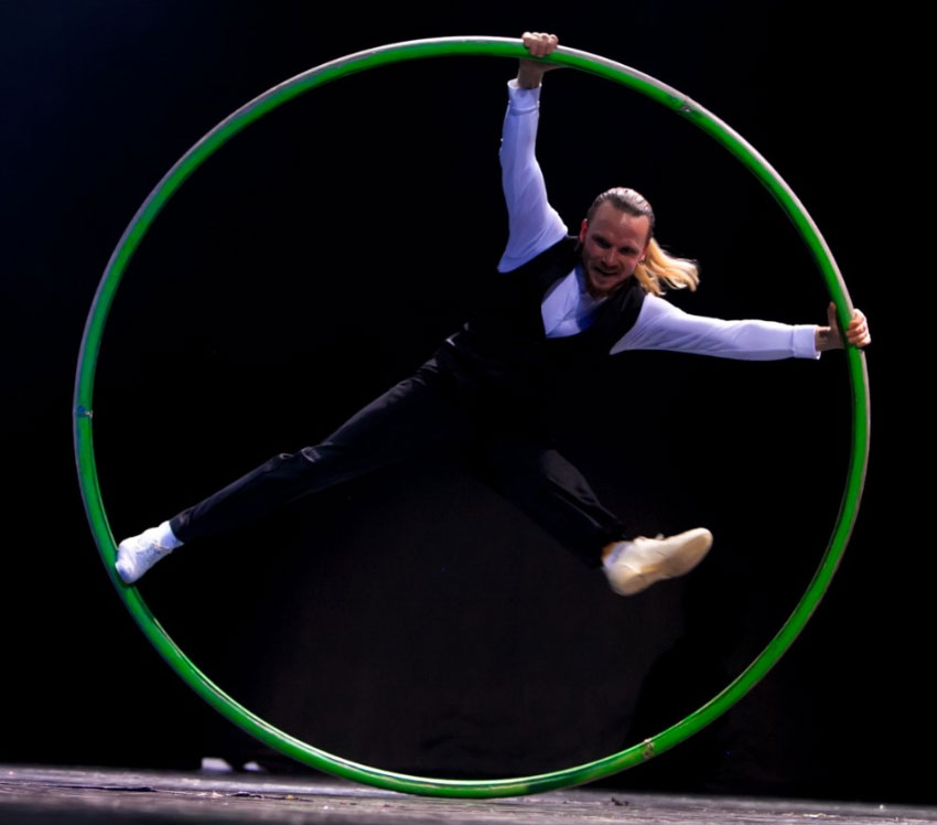 As a professional artist of international level, Alex and his experienced circus team have repeatedly collaborated with major companies in Europe and Asia, such as the cruise company MSC, WEP, CAMUS, demonstrating their impressive Cyr Wheel skills in a magnificent and fast performance. In addition to this, the team are able to perform a wide range of circus skills including fire acts, stilt walkers, aerialists and much more.