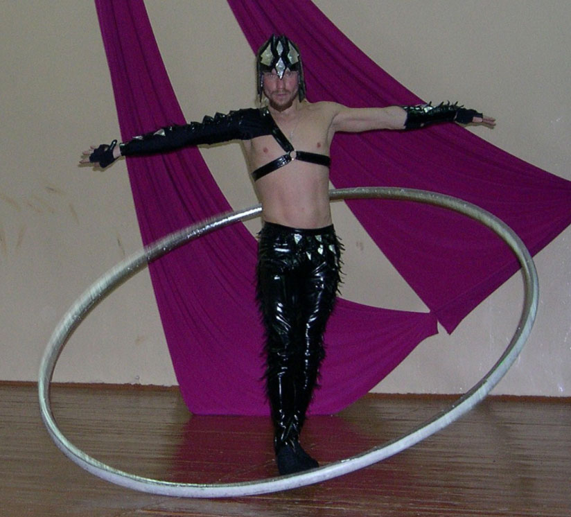 Circus Performer Alex is a professional circus artist and developer of creative projects, who works in original genres including: Cyr Wheel, German Wheel, Aerial Silks, Fire Show, Stilts, Light Show, Juggling with a Cube.