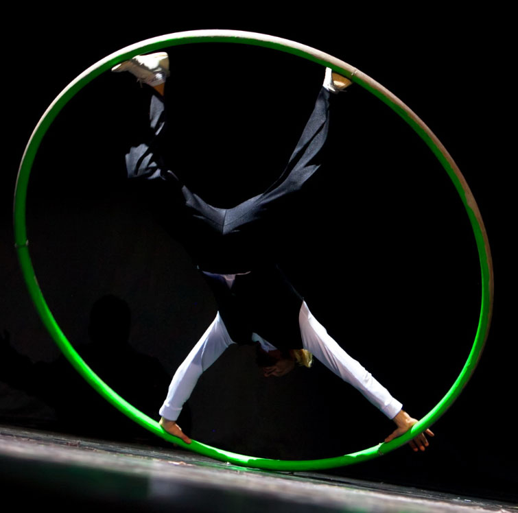 Creating premium-quality choreographies, solo, duo and group Cyr wheel acts, Alex and his team are able to provide completely bespoke performances tailored to your individual event by combining modern theatre and one of a kind visual art.