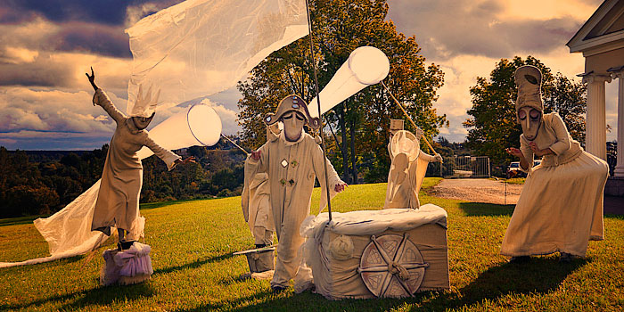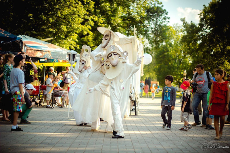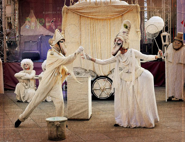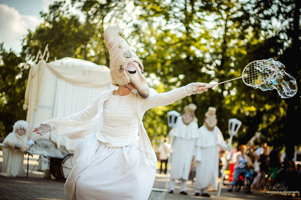 A surreal unique act with bizarre entertainers dressed all in white as strange fantasy characters with surreal masks. Captivating and impressive show that amazes crowds of all kinds.