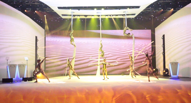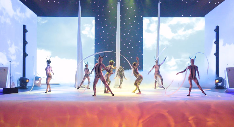 The stunning choreography includes: ballet dancers prancing and leaping across the stage like Gazelle, whilst the aerial performers drop down from high above. Adding a theatrical tone to any event!