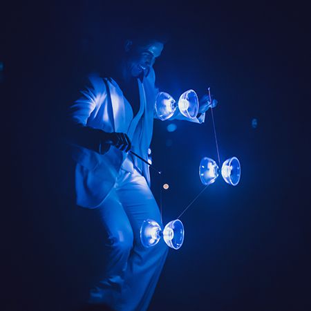 Known for his adaptable and innovative performances, this cirque diabolo artist has shown off his skills all over the world