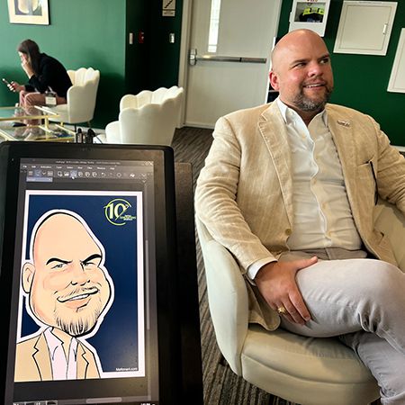 Based in Charlotte, North Carolina, but available across the U.S., he brings an unforgettable digital caricature experience to your special event