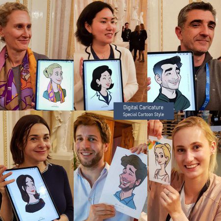 Our Digital Caricaturist Vienna will dazzle your guests and entertain the masses. A repeat winner on the international caricature convention "EUROCATURE" for professional caricature artists through the years. Our iPAD Caricaturist Vienna can perform Digital drawings on any device. Digital Caricatures are a modern and popular art experience, perfect for trade shows, corporate events, technology shows. weddings or high end private parties and functions. Digital caricatues are one of the most in demand forms of entertainment due to their versatility and brandig opportunities.