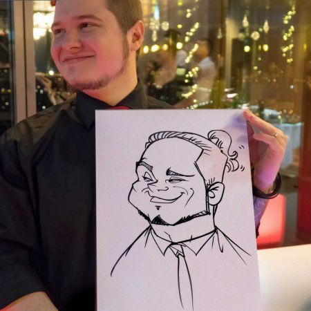 The perfect corporate entertainment Vienna, our digital caricaturist has performed for numerous high profile clients internationally, hia flexibile performance style has meant he is the go to performer for mix and mingle entertainment! Able to roam a venue and interact with guests, or stay based in one area, he will adapt his style to the personality of each event guest. His humerous illustrations have the perfect blend of exaggeration and spon on likeness!
