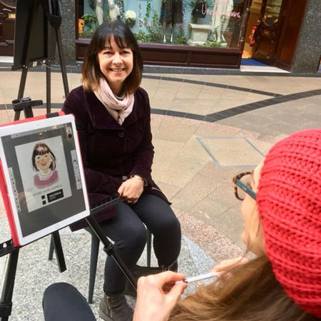 A professional illustrator, our highly talented tablet caricaturist is a popular choice with both private and corporate events as she supplies modern and visually spectacular caricatures for guests to cherish long after the occasion. A new experience and a brilliant alternative to traditional caricatures, our live event artist can either work as a walkabout performer or be seated alongside a digital screen on which guests can watch her working.