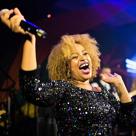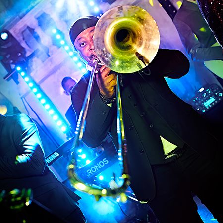 DJ & 3 singers with optional: Guitar, dancers, percussion, horn section, keyboards, bass, and strings.