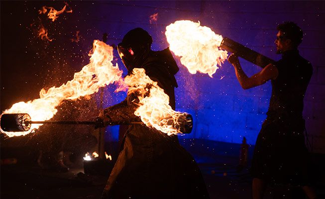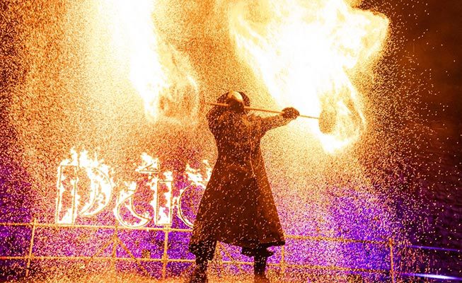 Boasting a range of fire props, shows can include Sparkle Staffs, Snake Poi, Fire Swords, Fire Hoops, Dragon Staff, Flamethrowers and other effects