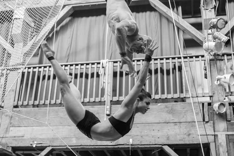 Relying only on one another our trapeze artists make even the most difficult of movements look effortless