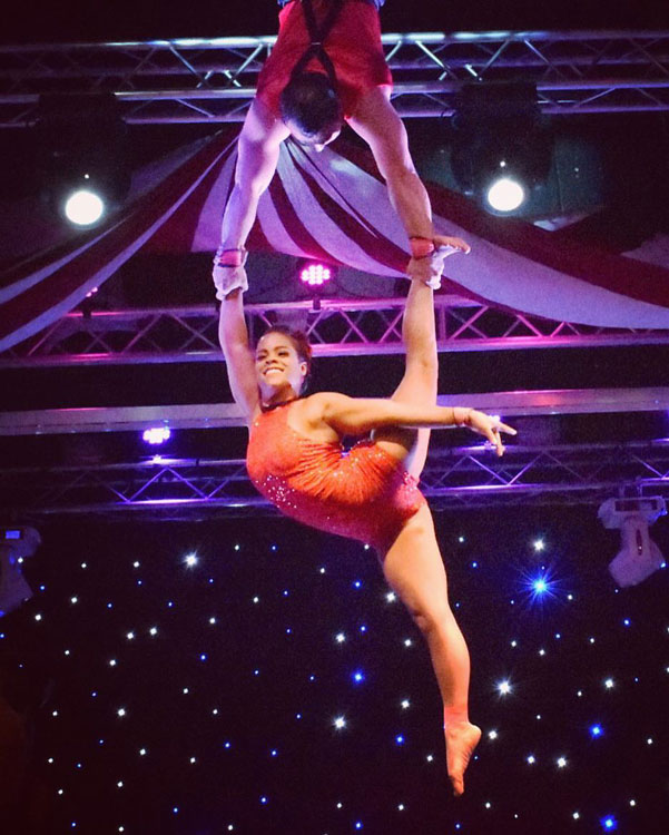 Born on opposites of the Cuban revolution the pair came and stayed together with the Circus. With extensive backgrounds in the circus our aerialists have performed with the Ringlings Brothers Circus as well as being a member of the Cuban National Gymnastic team, performing in various shows throughout North and South America.  With a passion and love of Circus and each other our aerial duo continue to strive to improve and achieve excellence in every performance.