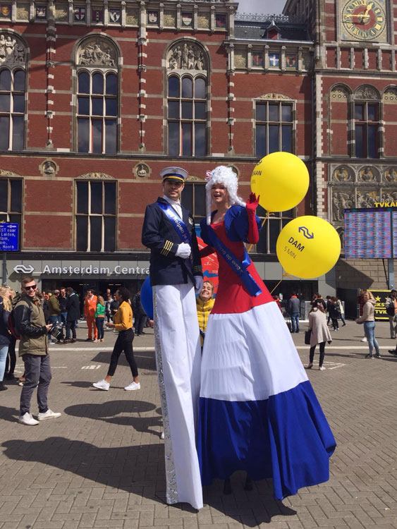 Stilt walkers dressed in Dutch flags will grab attention at your event