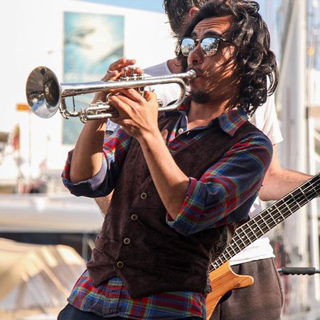 Comprised of 6 talented musicians playing an assortment of instruments such as congas, guitars, trumpets, violins, vocals and electronic rhythms