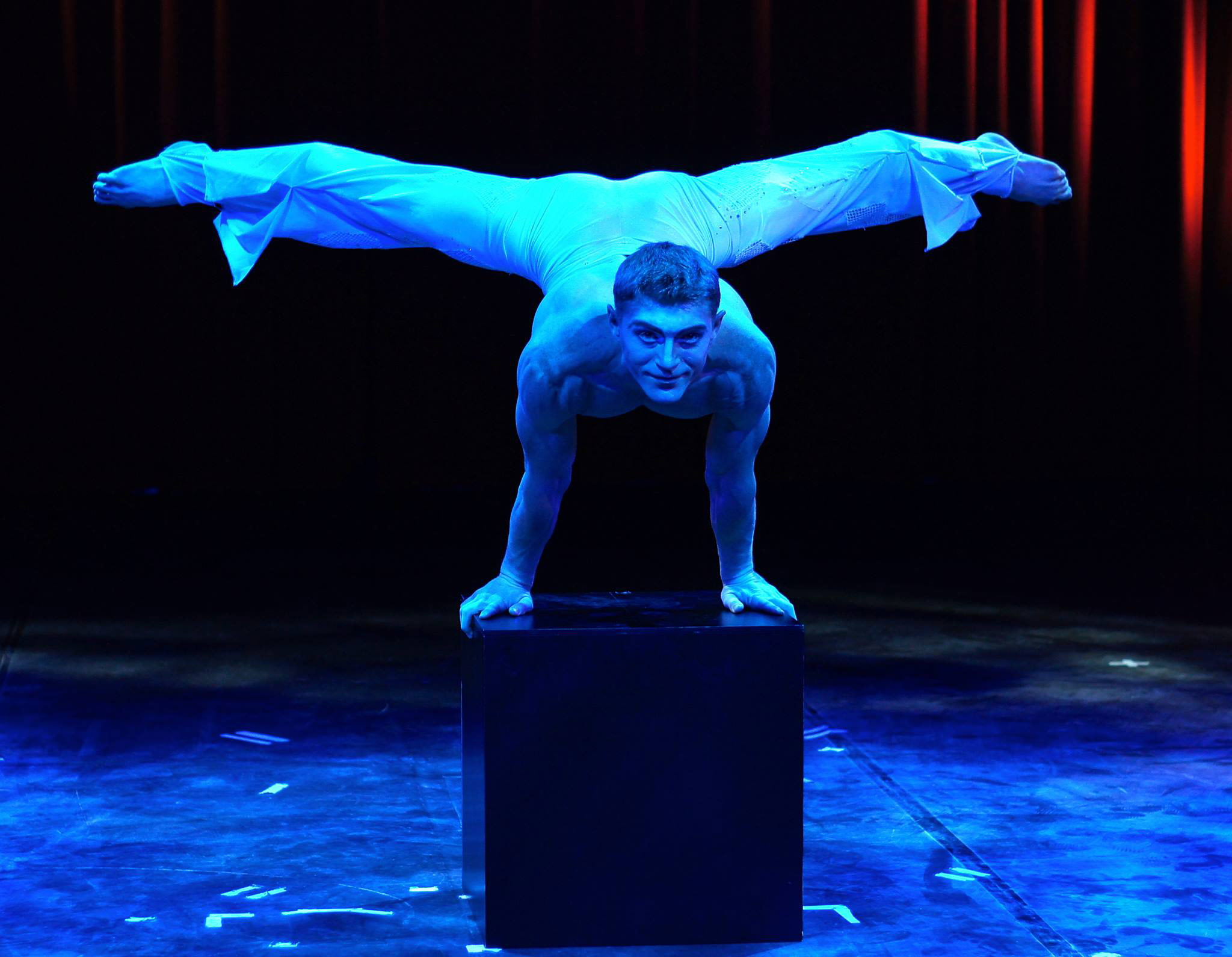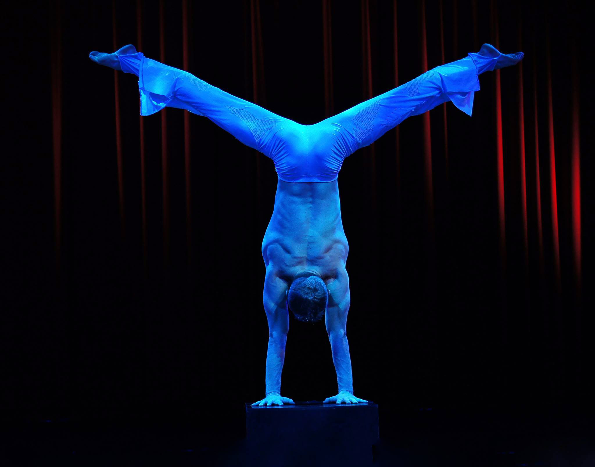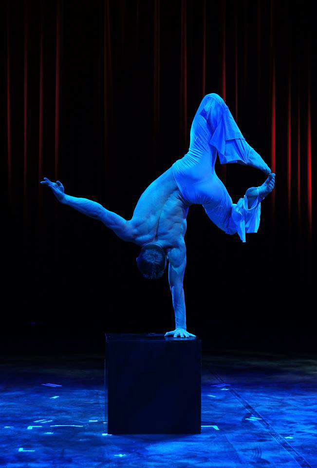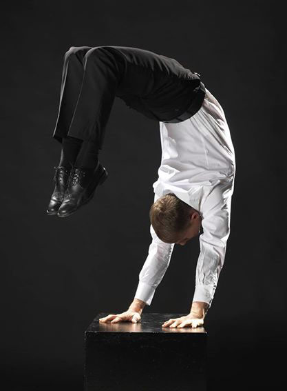 Slava performs difficult feats of balancing, he has perfected the handstand using core balance to twist and move his body weight whilst remaining in a strong balanced pose. A mesmerising experience for any audience.