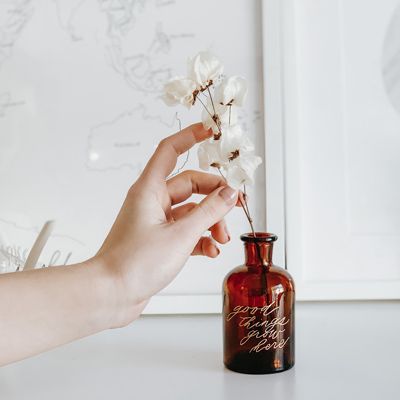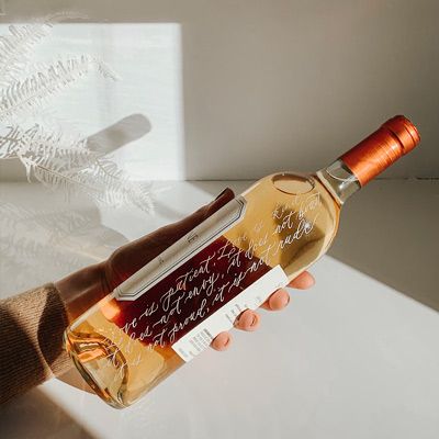 Our female modern calligrapher and engraver works with a long list of materials from bottles to handbags, paper to glass, the unique list is endless