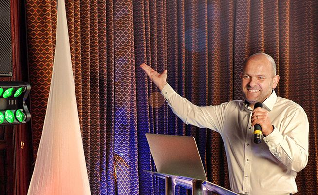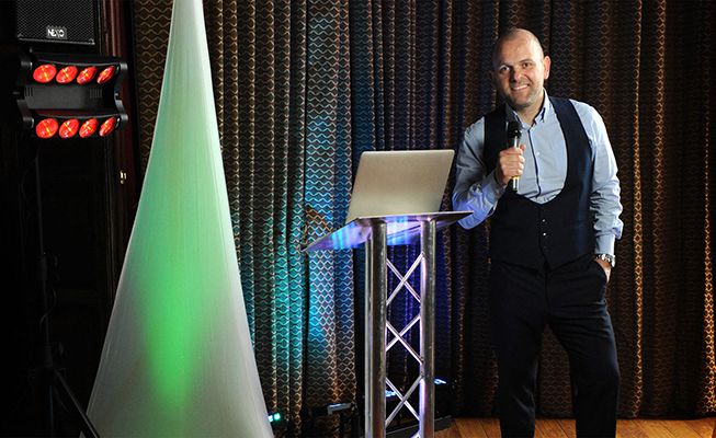 Enhances speeches and presentations with confident MC hosting, lighthearted introductions, and sleek setup to support speakers and entertain guests