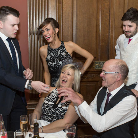 - Parlour Magic: Combining close up and cabaret magic, our event magician can provide a small show with no need for a table.