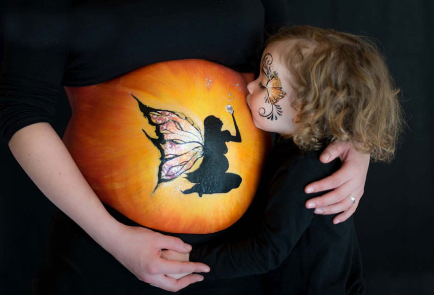 A form of body painting that has become increasingly popular in recent years as a way to immortalise and celebrate pregnancy in a beautiful and unique photo shoot. The mum-to-be can have just her bump or her whole upper body painted in her chosen design, which will have been carefully created in previous consultations.