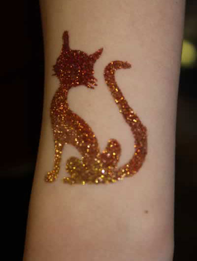 Available in any design you can think of in a range of 73 dazzling glitter colours, these temporary glitter tattoos are a fun addition to evening parties, weddings and special occasions! The temporary tattoos are created using a vinyl stencil and original Y-Body Glue that is suitable for all skin types. Each stencil is used only once. The glitter tattoos last for three to seven days following specific care instructions, or can be washed away earlier if desired.