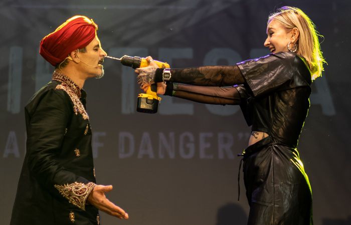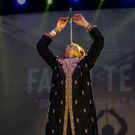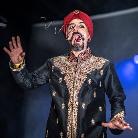 The incredible versatile Fakir Circus Show can be booked as a stage show or as street entertainment. Either way, it is visually captivating and involved audience participation. The Arabic circus performer has a wide variety freakshow style routines and human feats such as sitting on beds of nails, walking on glass, fire eating, driving objects through his face, climbing a ladder of swords and much music more. He delivers all acts with good humour and a theatrical performance. He is featured in the Guinness Book of World Records and has appeared on popular TV shows such as America's Got Talent, in movies, series, and more